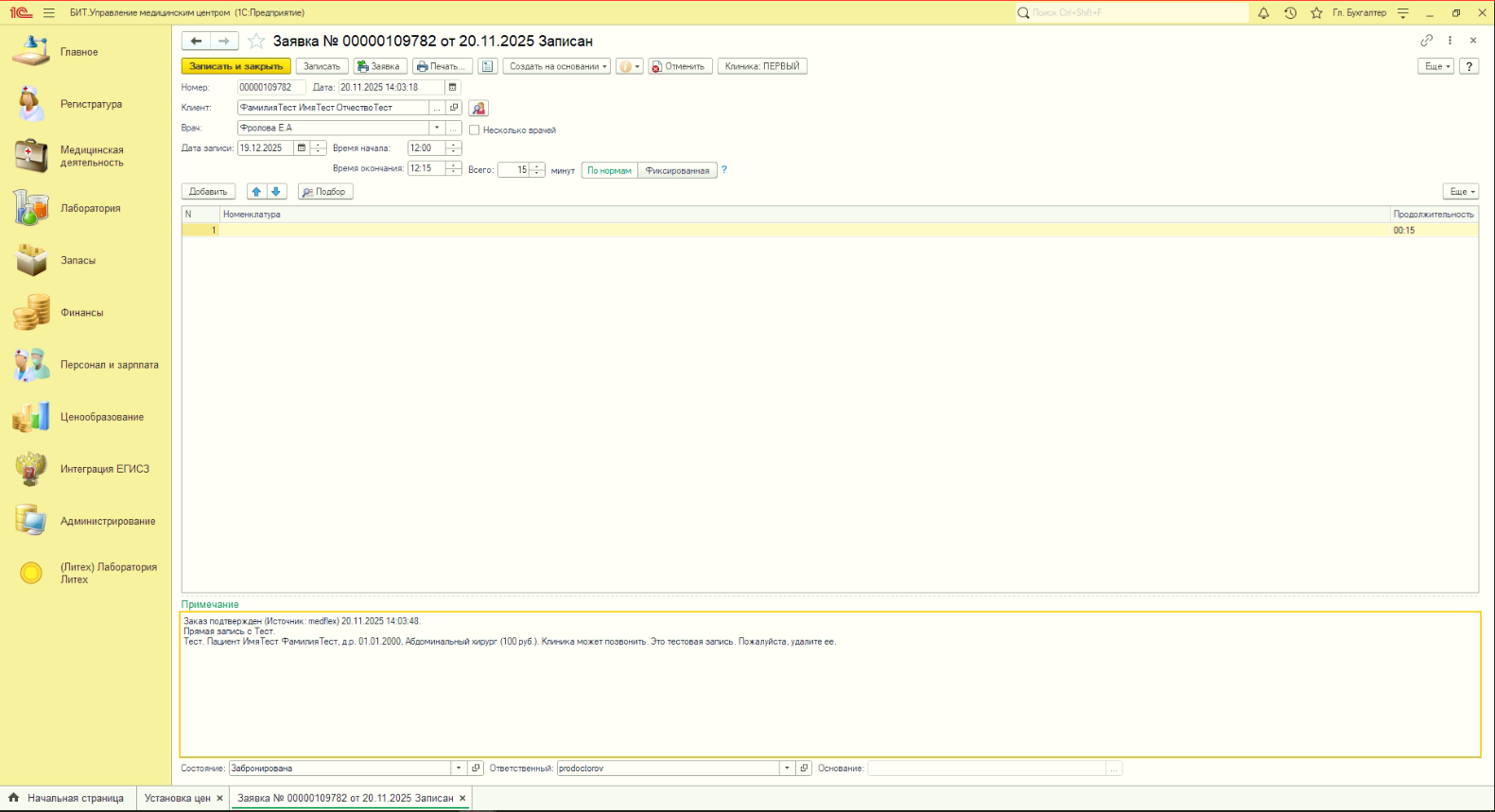 В МИС 1С: Бит УМЦ и 1С: Бит Стоматология при подтверждении записи пациентом Статус записи в МИС меняется на Забронировано и в комментарий добавляется об этом запись.