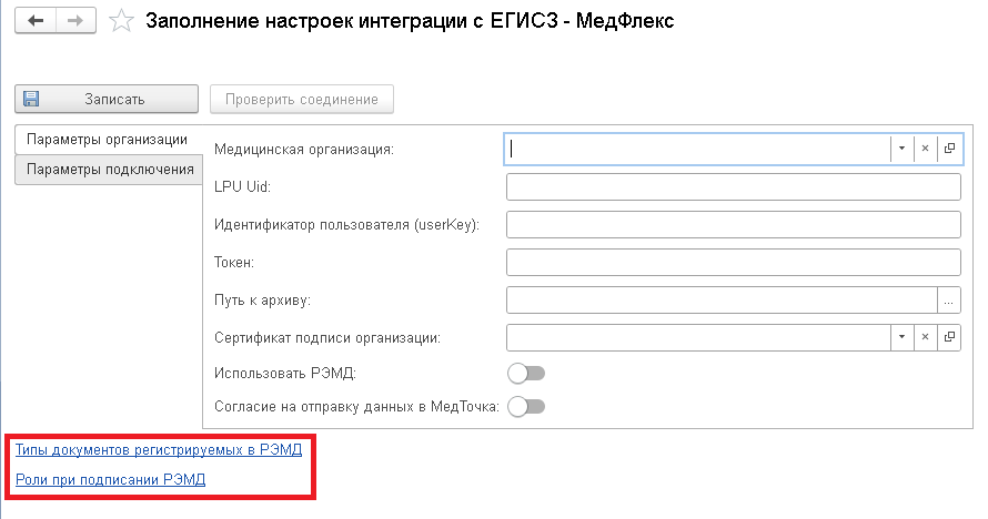 Зачем: Для отправки данных в ЕГИСЗ должны быть заполнены некоторые обязательные параметры.