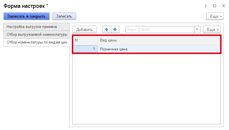 Для выгрузки цен обязательно должны быть заполнены цена, клиника, вид цены. Цены выгружаются по срезу последних, то есть учитывается только самая новая запись в регистре.