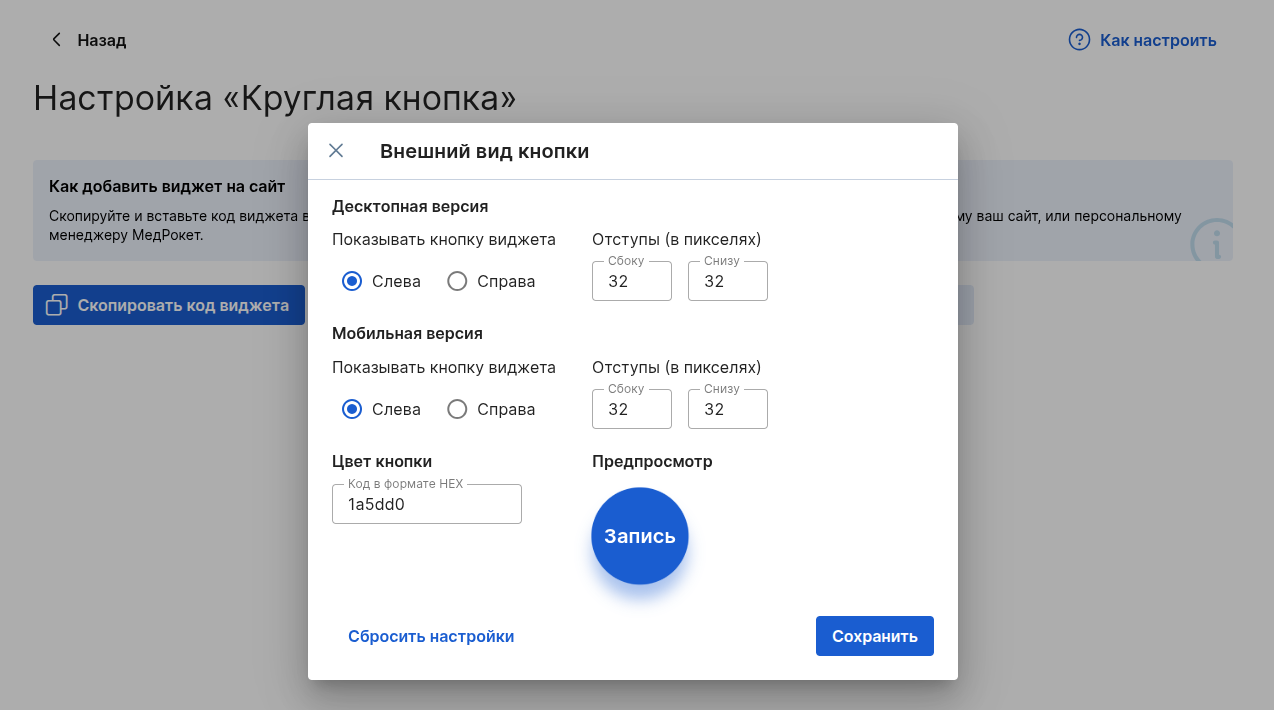 При возникновении трудностей во время настройки виджета, обратитесь к вашему персональному менеджеру МедРокет.