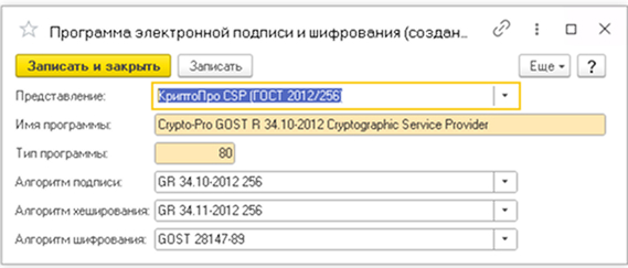 3. В разделе «Программы» необходимо нажать кнопку «Добавить» в появившемся списке выбираем КриптоПро CSP (ГОСТ 2012/256) как показано на рисунке ниже.
