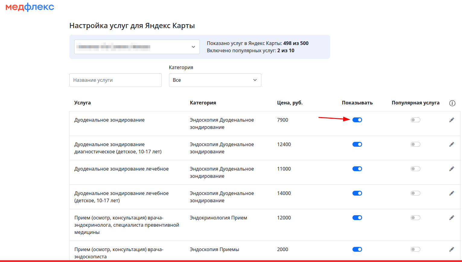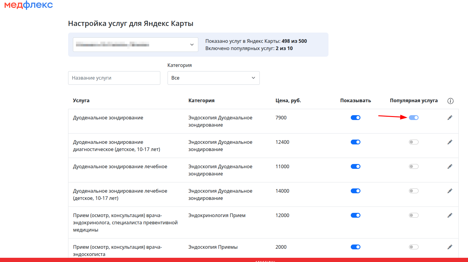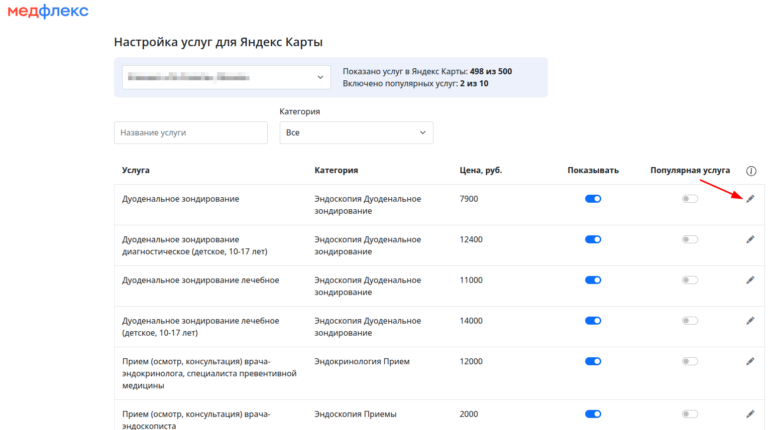 Если клиника ранее уже выгружала прайс-лист в Яндекс, то необходимо переключиться на выгрузку прайс-листа через МедФлекс в Яндекс Бизнес.