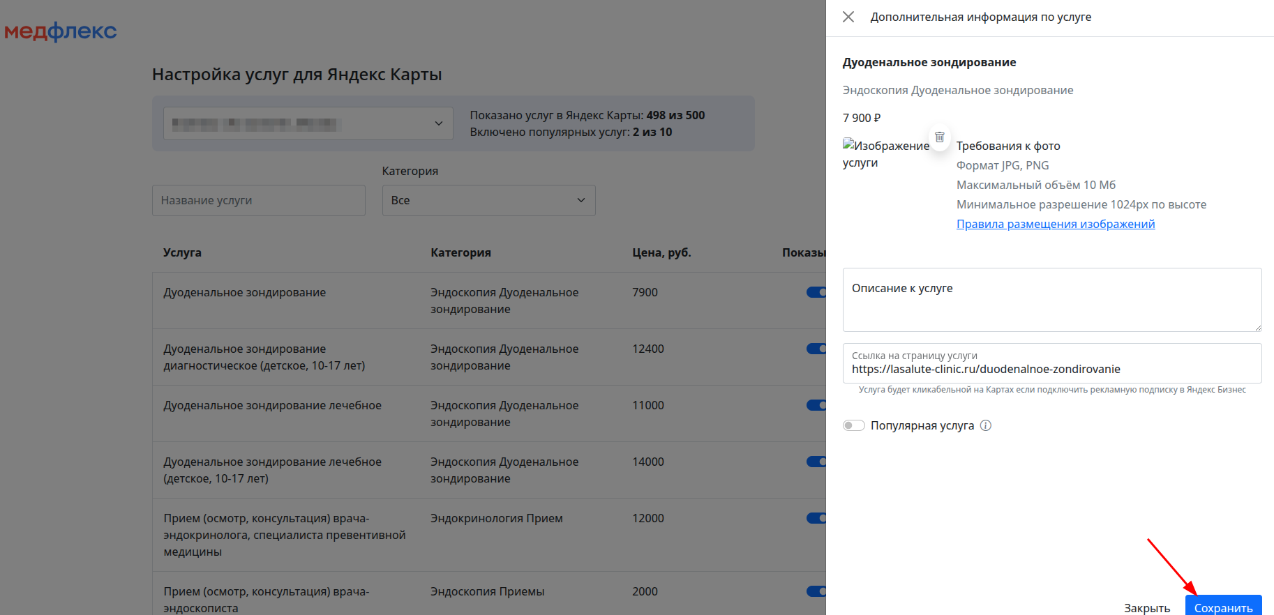 Важно! Если этого не сделать, то интеграция «Прайс-лист на Яндекс Картах» подключенная в ЛК МедФлекс работать не будет. В этом случае будет выгружаться ваш старый прайс-лист добавленный в Яндекс Бизнес.