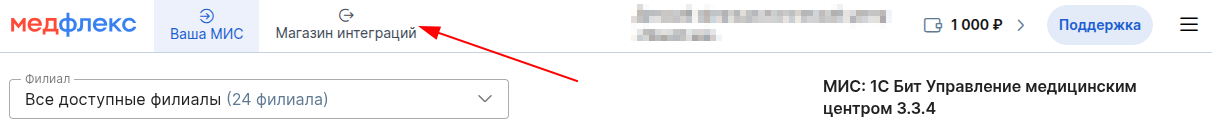 2) На странице "Ваша МИС" в левом верхнем углу нажмите "Магазин интеграций".