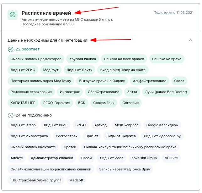 В разделе «Магазин интеграций» собраны все интеграции, которые можно подключить для вашей МИС.
