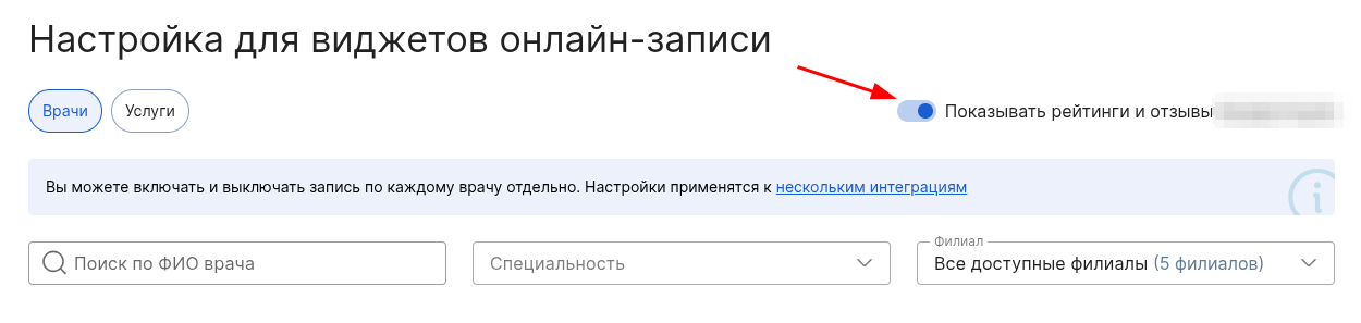 5. Виджетте дәрігерлердің рейтингтері мен пікірлерін көрсету немесе көрсетпеуді таңдаңыз YDoc. Тек расталған жарияланған шолулар көрсетіледі.