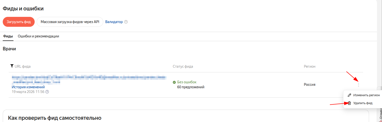 Если не отключить выгрузку фида сайта клиники в Яндекс, предложения на странице поиска будут дублироваться, что может негативно отразиться на количестве заявок.