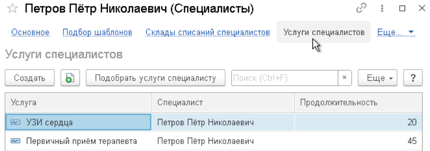 Услуги, на которые планируется запись, должны быть добавлены в справочник «Специалисты»