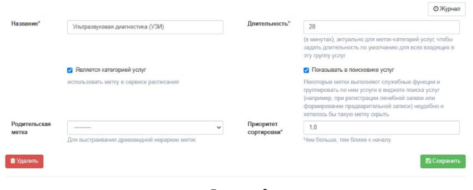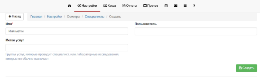 - В поле «Имя» укажите наименование метки, например: наименование медицинской специальности.