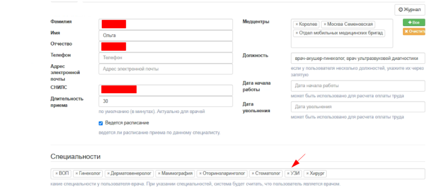 10. У врача для поля «Медцентры» добавьте филиалы, в которых должна присутствовать возможность онлайн-записи на услугу.