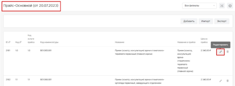 Важно: Для выполнения этих действий у вашей группы пользователей должна быть включена привилегия «Редактирование прайс-листа». Изменения услуги коснутся всех прайсов где эта услуга есть в наличии.