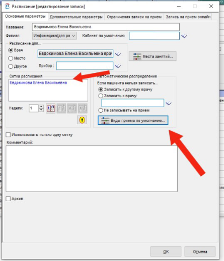 Важно! Сетки расписания у врача не должны пересекаться.