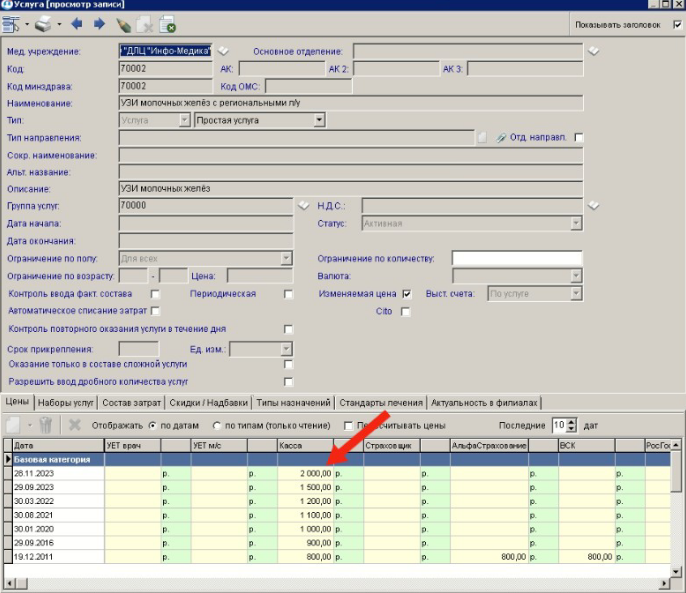 При выгрузке услуг берется последняя выставленная стоимость услуги.