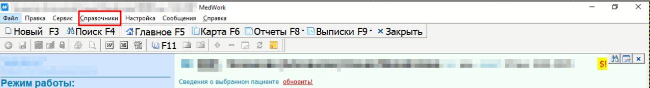 - На главном экране МИС перейдите в пункт меню «Справочники».