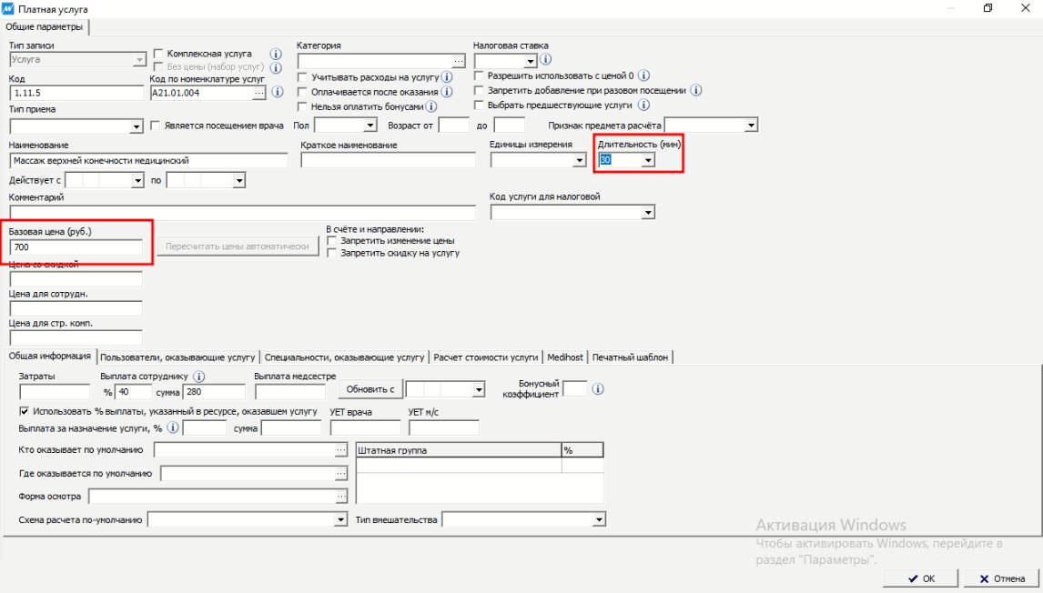 4. Укажите длительность оказания услуги и базовую стоимость.