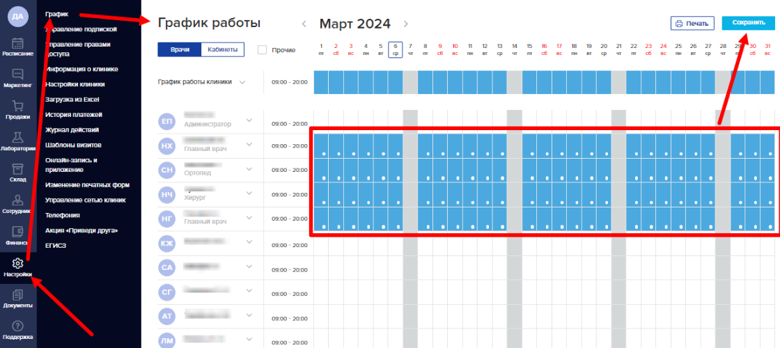 - Выберите «Настройки» и нажмите «График», чтобы настроить график работы сотрудников.