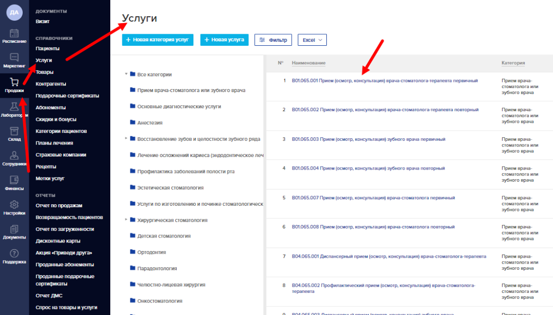 2. Нажмите на «Продажи» и выберите «Услуги», чтобы добавить и настроить услуги.