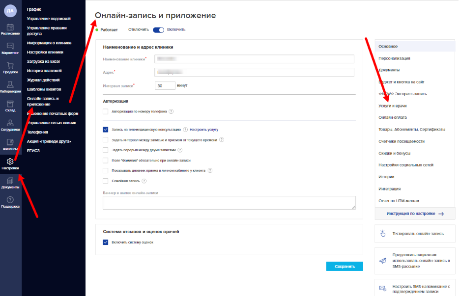 4. Нажмите «Настройки» и выберите «Онлайн-запись и приложение».